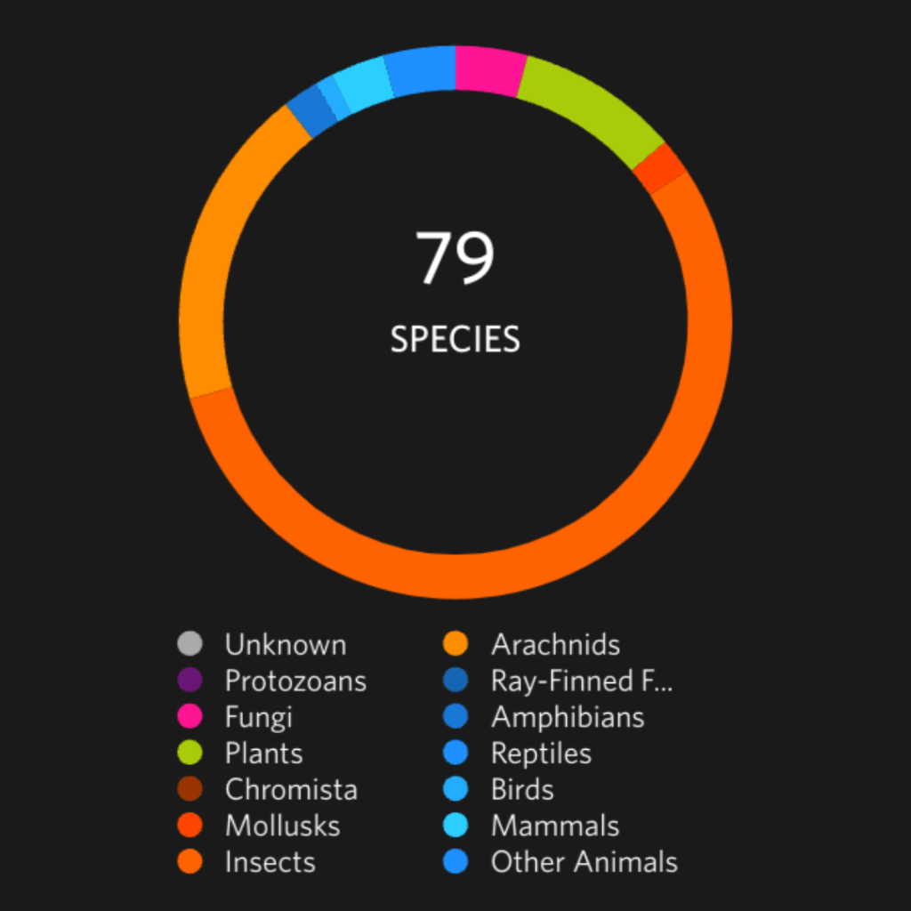 Our annual review of our site observations is now online on iNaturalist! This review gives an amazing breakdown of the wildlife observations, categorising them into species, for example, classifying Arachnids into Entelegyne spides and sub categories of Cobwed spiders, Orb Weavers, Funnel Weavers, Crab Spiders, Wolf Spiders, Laceweb spiders etc.