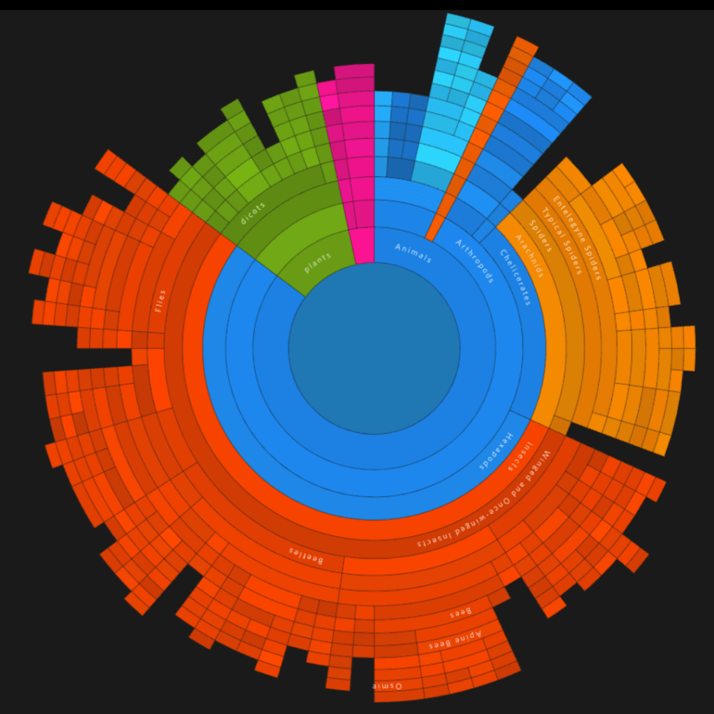 The graphs are interactive and you can zoom into one branch of the graph to focus on a selection of species or an individual observation.