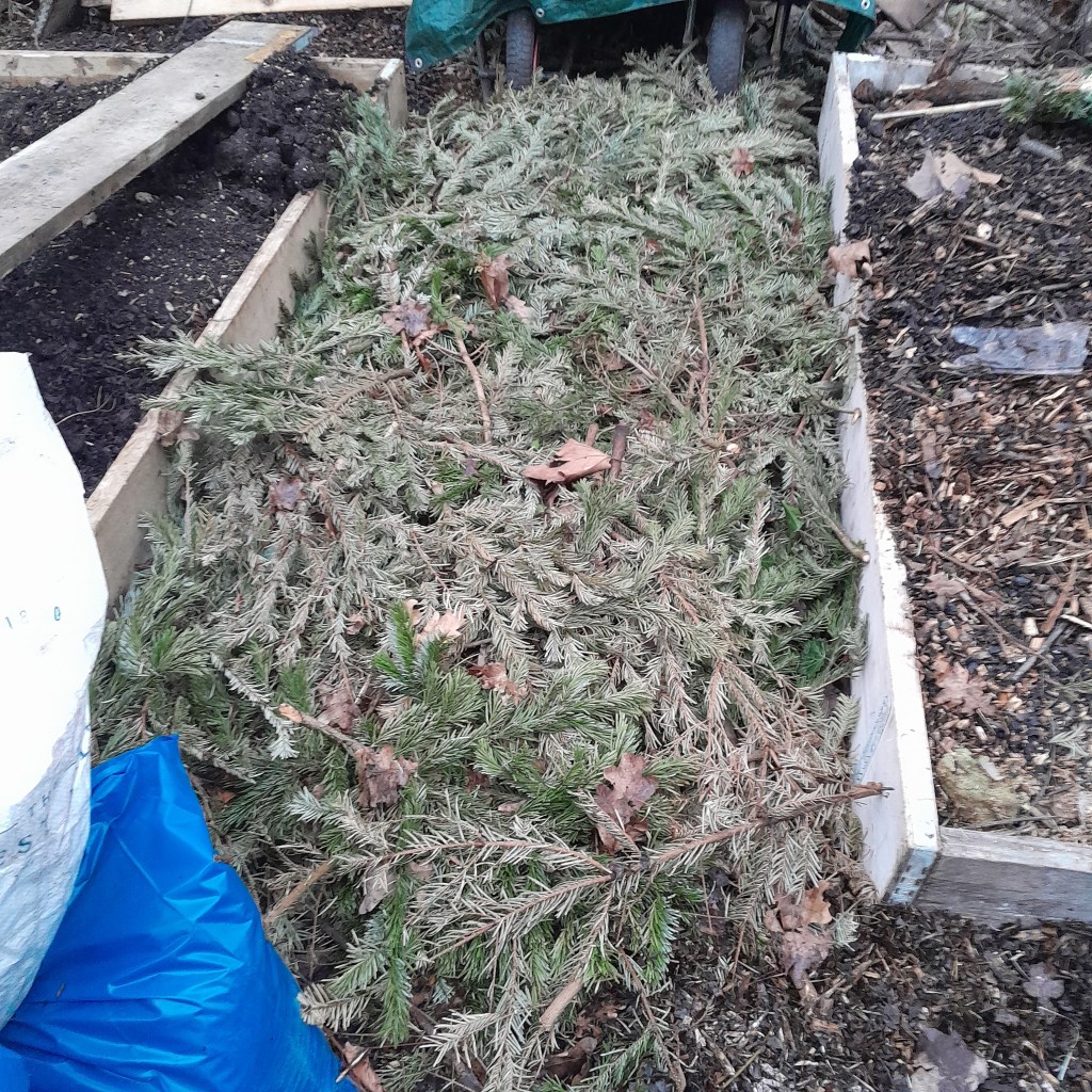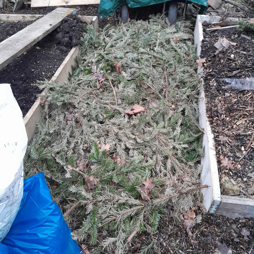 - Creating new paths around beds using corrugated cardboard to suppress weed and grass regrowth, topped with a deep woodchip mulch (sourced from local tree surgeons) to retain rainwater, reduce competition to food crops and minimize the need for maintaining grass paths.