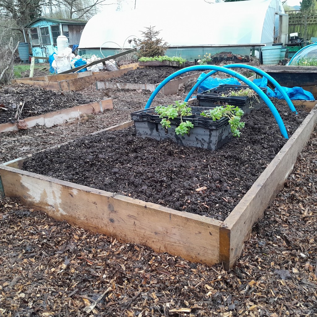 Beyond planting flower bulbs, garlic sets are in the ground along with more wild garlic, first early potatoes are chitting, prior to planting, and there are seed onions to sow, broad beans to plant out as the weather improves.