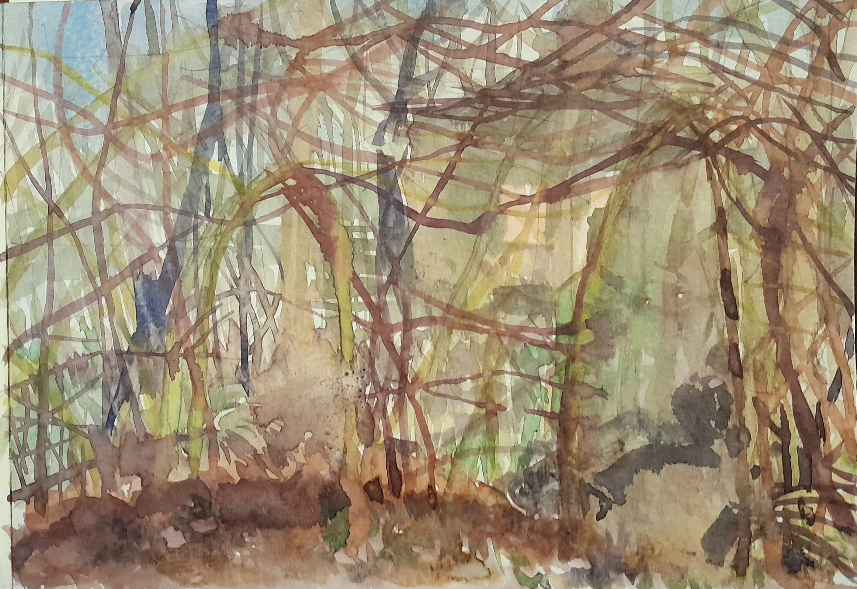 It was fun to see how each artist found their own little vista to focus on, positioning themselves around the site to sketch their own viewpoint. Despite some cold fingers it was great to see the artwork and it really added a lot to see the rather wintry scenes and finding beauty in the dormant meadow and bare branches of our mature trees.