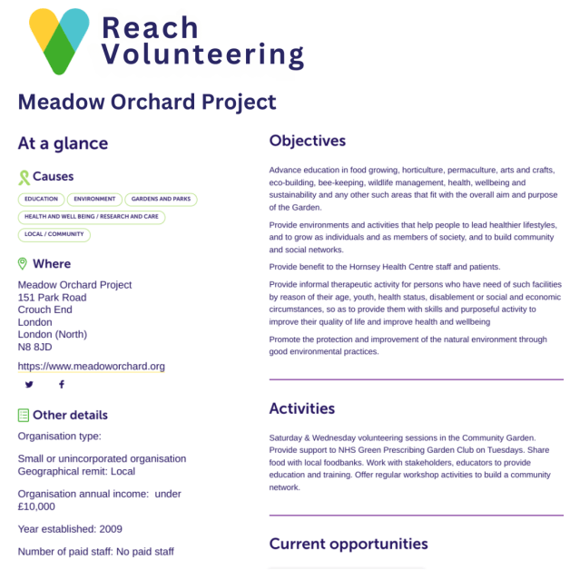 Meadow Orchard has a number of volunteer vacancies currently advertised on Reach Volunteering.