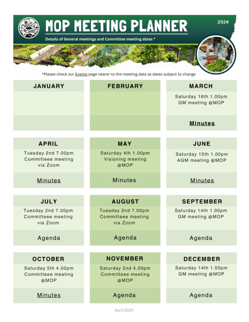 Meadow Orchard has a number of scheduled meetings throughout the year. We have monthly meetings for the management committee and quarterly general meetings.