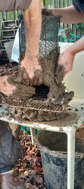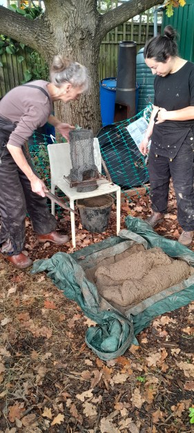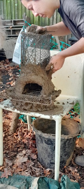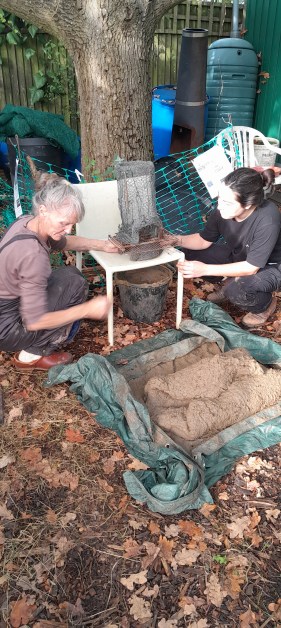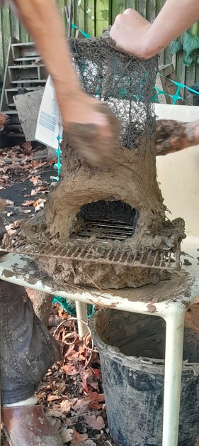 This week we were making a rocket stove, building a chicken wire structure or armature and then rendering with cob (a mix of clay, sand, straw or dry grass). Using found, reclaimed and up-cycled materials as well as natural materials sourced on site, really opens up a whole world of affordable and sustainable building.