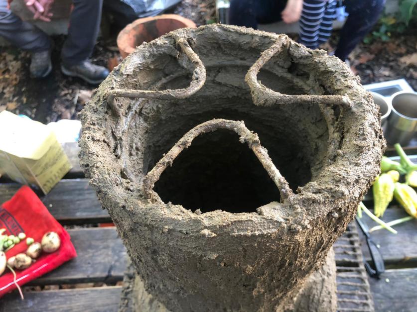 Experimenting with stove design, vortexes, combustion, airflow and efficeiency is all possible when working with cob as it’s so simple to adapt, modify and repair the items during use too.