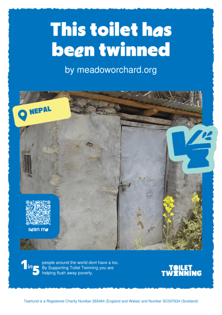 Thanks to our volunteers generous donations, we raised £60 for the Toilet Twinning charity. Our own composting loo is now twinned with this toilet in Nepal! Check out this certificate, proudly on display in the loo shed at Meadow Orchard!