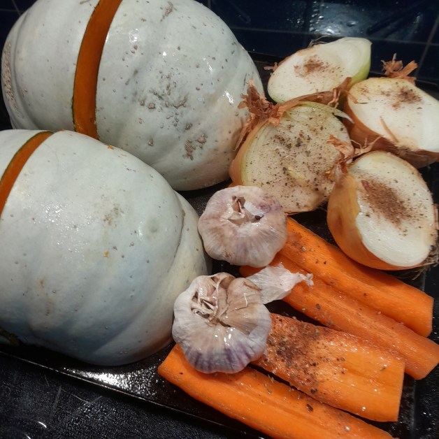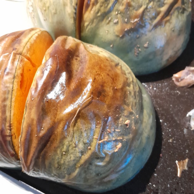 After 35 minutes take the tray out of the oven and poke the pumpkin with a knife to see if it’s tender. If not return into the over for a further 5 minutes.