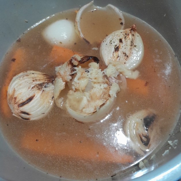 Scoop the onions out from the skin and remove the skin from the pumpkin. You can squeeze the roasted garlic into the pan or use a garlic press.