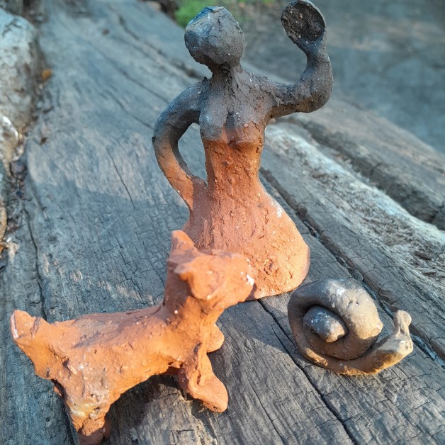 At this stage the clay is very soft and easy to sculpt into whatever weird and wonderful forms we desire. Hand modelling is a playful activity and immensely satisfying and therapeutic too. There is no pressure, if it goes wrong, simply add water and rework! The resulting pieces can also be returned to the earth so it’s an incredibly low impact activity.