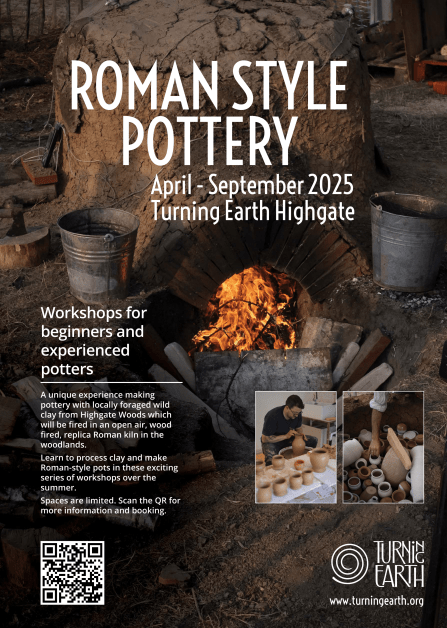 The learning curve is amazing, delving into our local wild clay. We are just touching the surface on the fascinating history or wood firing in nearby Highgate wood and the incredible replica roman kiln (Which will be fired again this September)