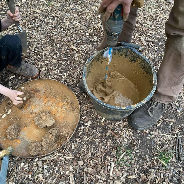 Collaborating with local potters and recently experimenting with firing our own clay has opened up a whole new world of creative exploration. Traditionally, clay has been used by sculptors to create maquettes or forms for casting finished sculptures. Outdoors, clay can be used for temporary sculptures or larger structures, building clay around a woven support structure. Outdoors, unfired clay can be sealed and rendered to make it weatherproof and more permanent.