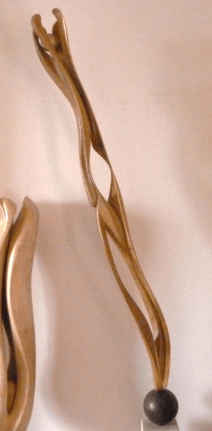 Carved and polished sycamore, Japanese cedar, and oak, mounted on Ancaster stone. H = 80 cm