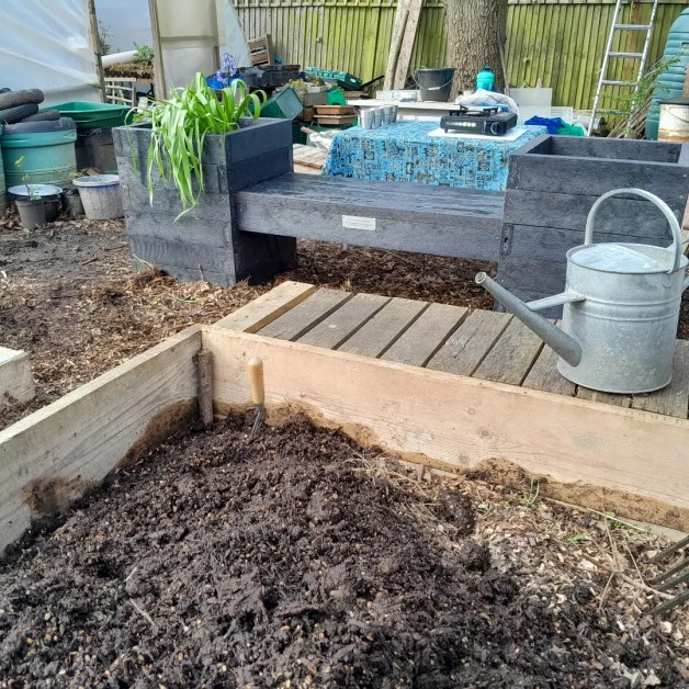 The food growing space IS the real heart of our garden project. We have several cultivated semi-raised beds for growing fruit and vegetables to share. We also have perennial beds for herbs and ornamental plants.